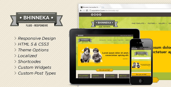 Bhinneka is one of the many Responsive NonProfit WordPress themes featured here, for the self-hosted (.org) version of WordPress (read this). Premium themes typically include support and updates.