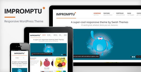 Impromptu is one of the many Responsive Portfolio WordPress themes featured here, for the self-hosted (.org) version of WordPress (read this). Premium themes typically include support and updates.
